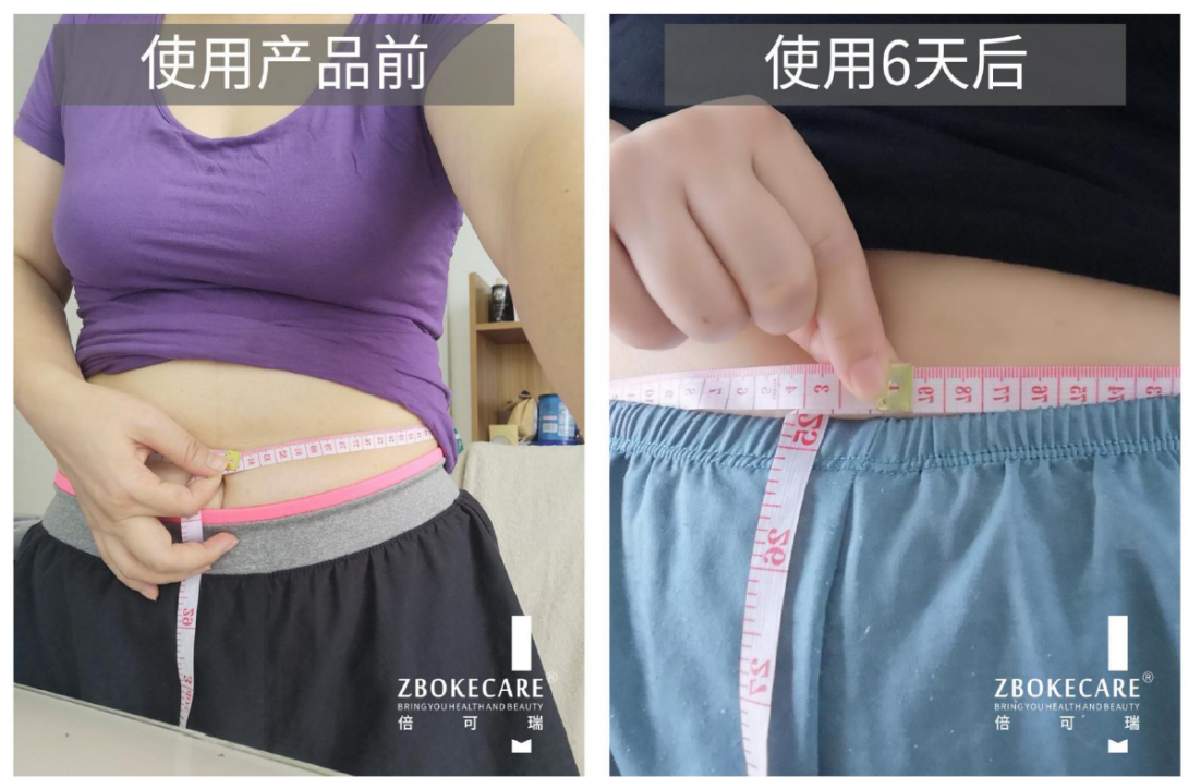 使用后:使用產(chǎn)品6天后,腹部皮膚變緊實、收緊,腰圍測量79公分,塑形5公分。