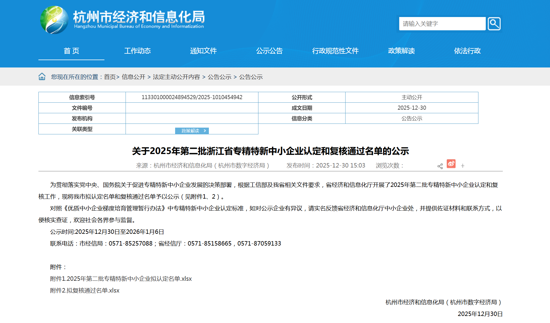 近日,杭州市經(jīng)濟(jì)和信息化局正式公布了最新一批浙江省專精特新中小企業(yè)名單。