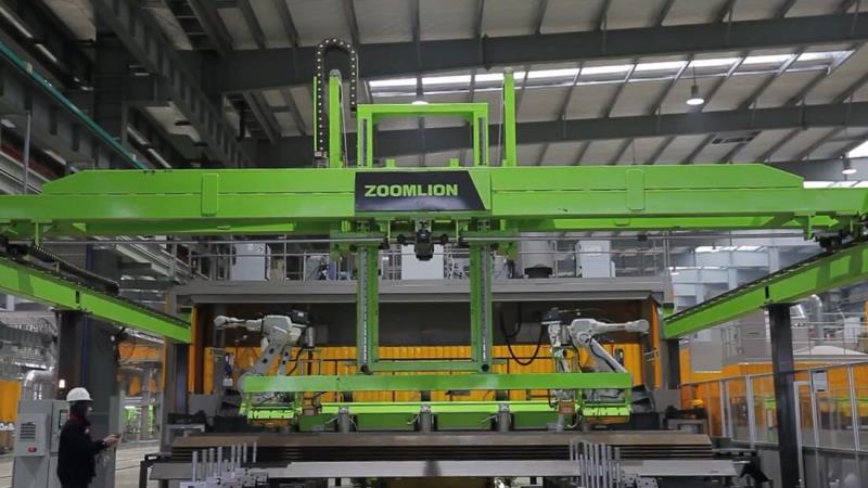 ▲中聯(lián)重科塔機智能工廠正在生產(chǎn)