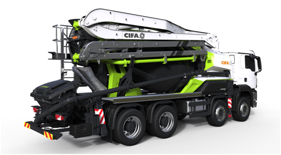 ▲即將亮相德國寶馬展的中聯(lián)重科CIFA攪拌布料泵車