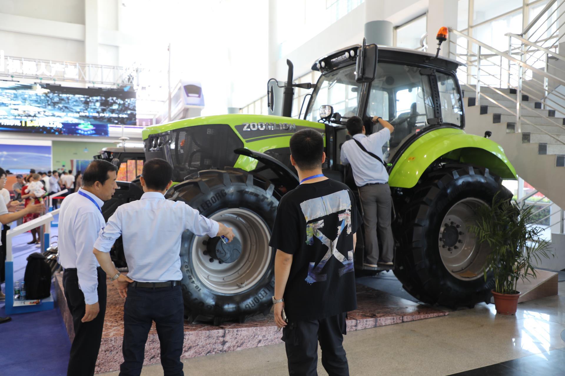 ▲成果展上,現(xiàn)場(chǎng)嘉賓觀摩中聯(lián)重科PL2304拖拉機(jī)