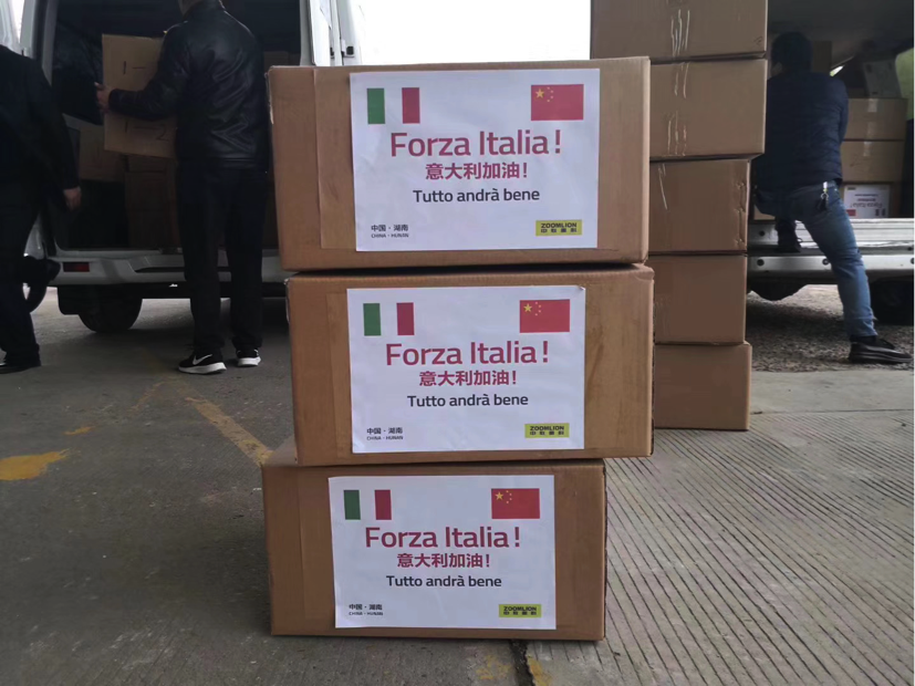 ? ?五天前,湖南省委省政府調(diào)撥中聯(lián)重科向意大利捐贈(zèng)的5萬(wàn)只口罩從長(zhǎng)沙出發(fā),并火速發(fā)運(yùn)至意大利,捐贈(zèng)給了意大利倫巴**大區(qū)負(fù)責(zé)應(yīng)急物資調(diào)配的部門(mén),馳援當(dāng)?shù)蒯t(yī)療一線,為他們抗擊疫情提供了及時(shí)的幫助。