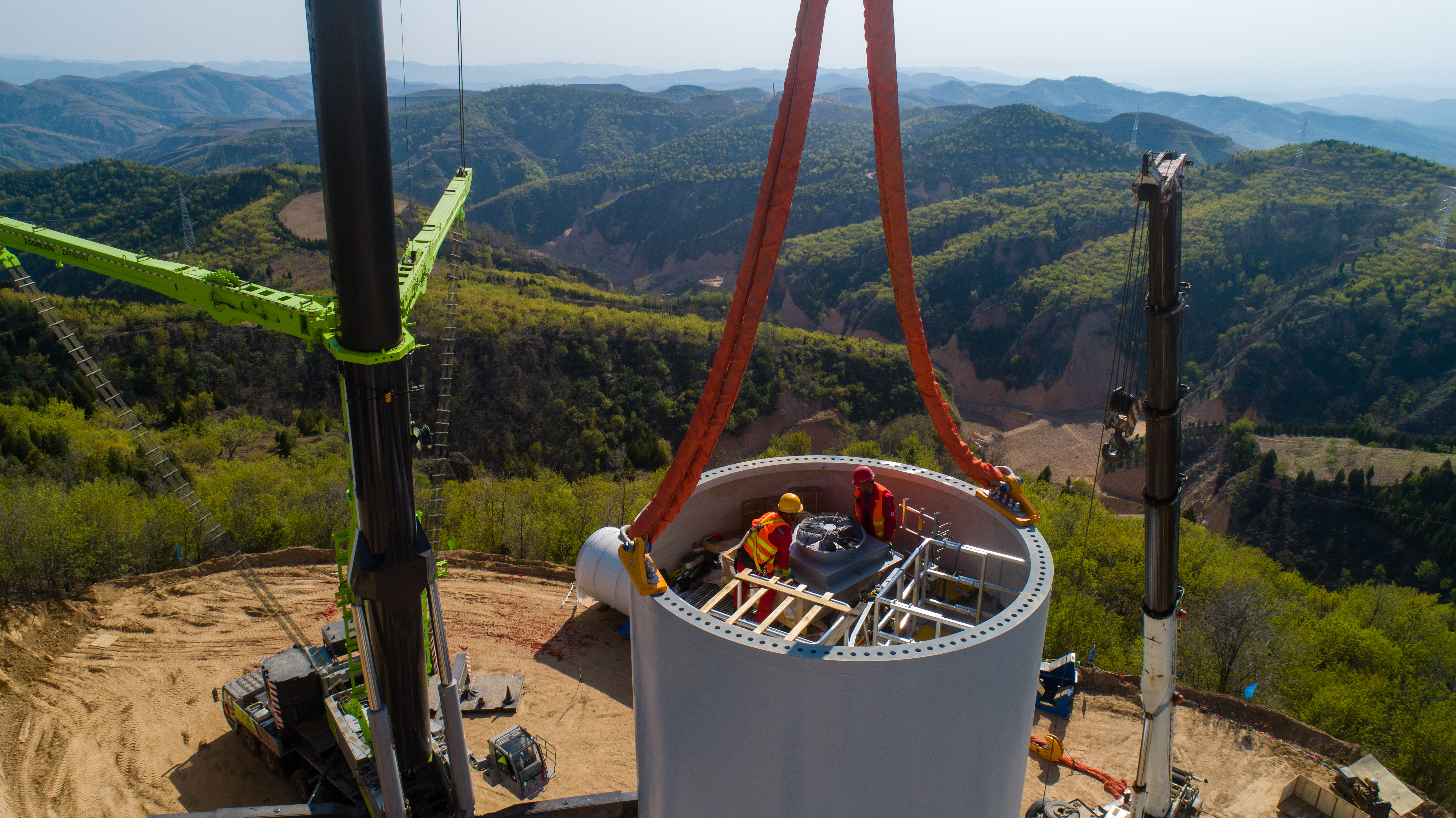 ? ?4月28日,隨著**后一根數(shù)十米長的風機葉片徐徐上升,在近百米的高空與輪轂精準對接,山西省石樓縣小蒜鎮(zhèn)風電建設(shè)項目又完成了一臺風機吊裝。湛藍的天空下,中聯(lián)重科極光綠起重機臂架高聳挺立于山頂,展開的超起機構(gòu)如同張開雙翅,蔚為壯觀。中聯(lián)重科800噸全地面起重機用卓越的性能和高效的施工不斷地續(xù)寫著“風電神器”的佳話。