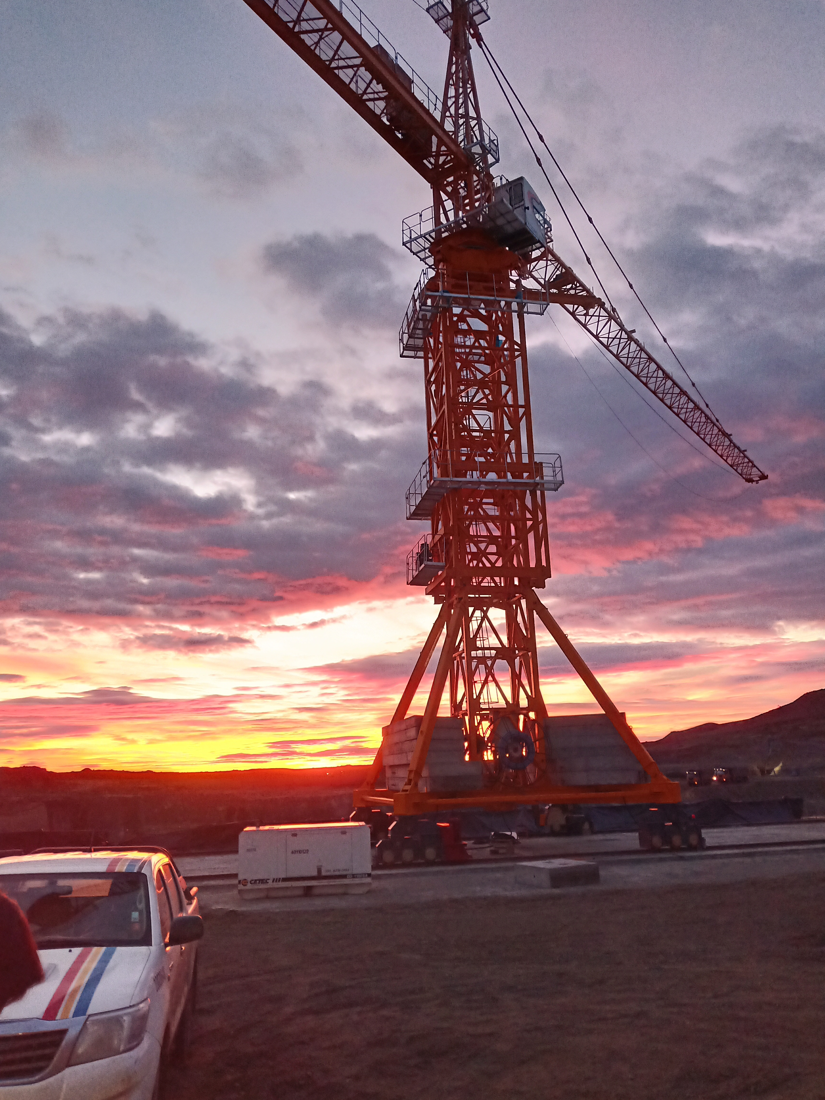在這種極端條件下,中聯(lián)重科攜手承建商中國能建葛洲壩集團,為項目供應了多臺錘頭式塔機TC7052-25和D800-42投入使用。考慮到此項目氣候環(huán)境較為復雜,且設備需要極高的抗風能力,中聯(lián)重科研發(fā)團隊針對該項目做了一系列特殊化設計,如采用片式標準節(jié)結(jié)構(gòu),節(jié)片間用經(jīng)特殊處理過的銷軸連接,標準節(jié)主弦桿拼方采用埋弧焊,大大提高了力學性能;腹桿采用方鋼管結(jié)構(gòu),分散風力,優(yōu)化了塔機的抗風性。