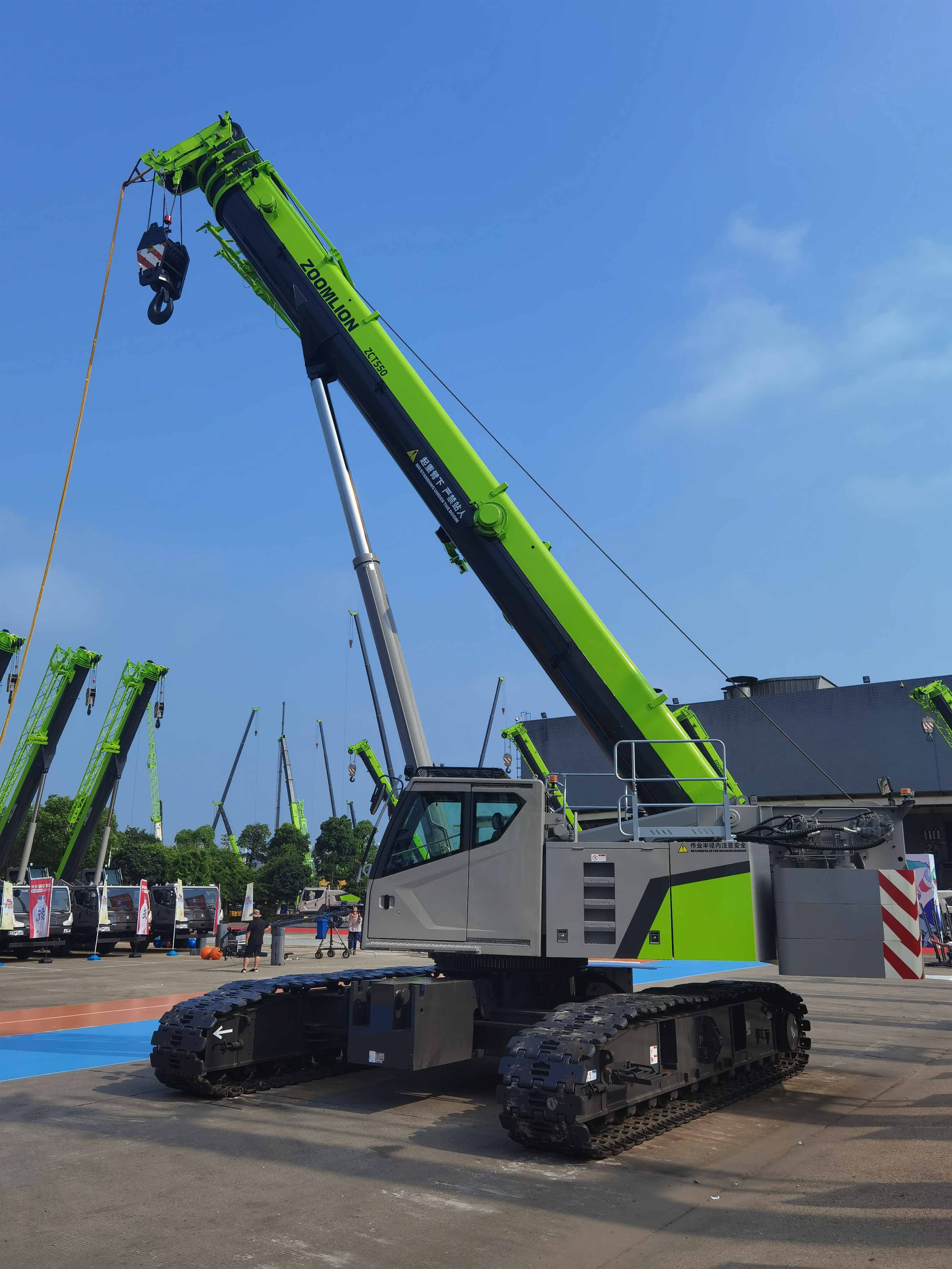 ? ?據介紹,這兩款伸縮臂式履帶起重機顯著的優(yōu)勢就是機動靈活、應用范圍廣?!皟煽町a品均滿足3米運輸的規(guī)格尺寸要求,可整機運輸無需拆裝,轉場方便快捷。產品采用伸縮臂式主臂配置,ZCT550全伸臂長達42.7米,ZCT900全伸臂長為47米,可在臂長范圍內滿足各種作業(yè)幅度的需求。同時,產品的下裝為可伸縮式履帶,既滿足吊裝作業(yè)時高穩(wěn)定性的要求,又滿足整車運輸時對車輛外形尺寸的要求”,何新維介紹道。