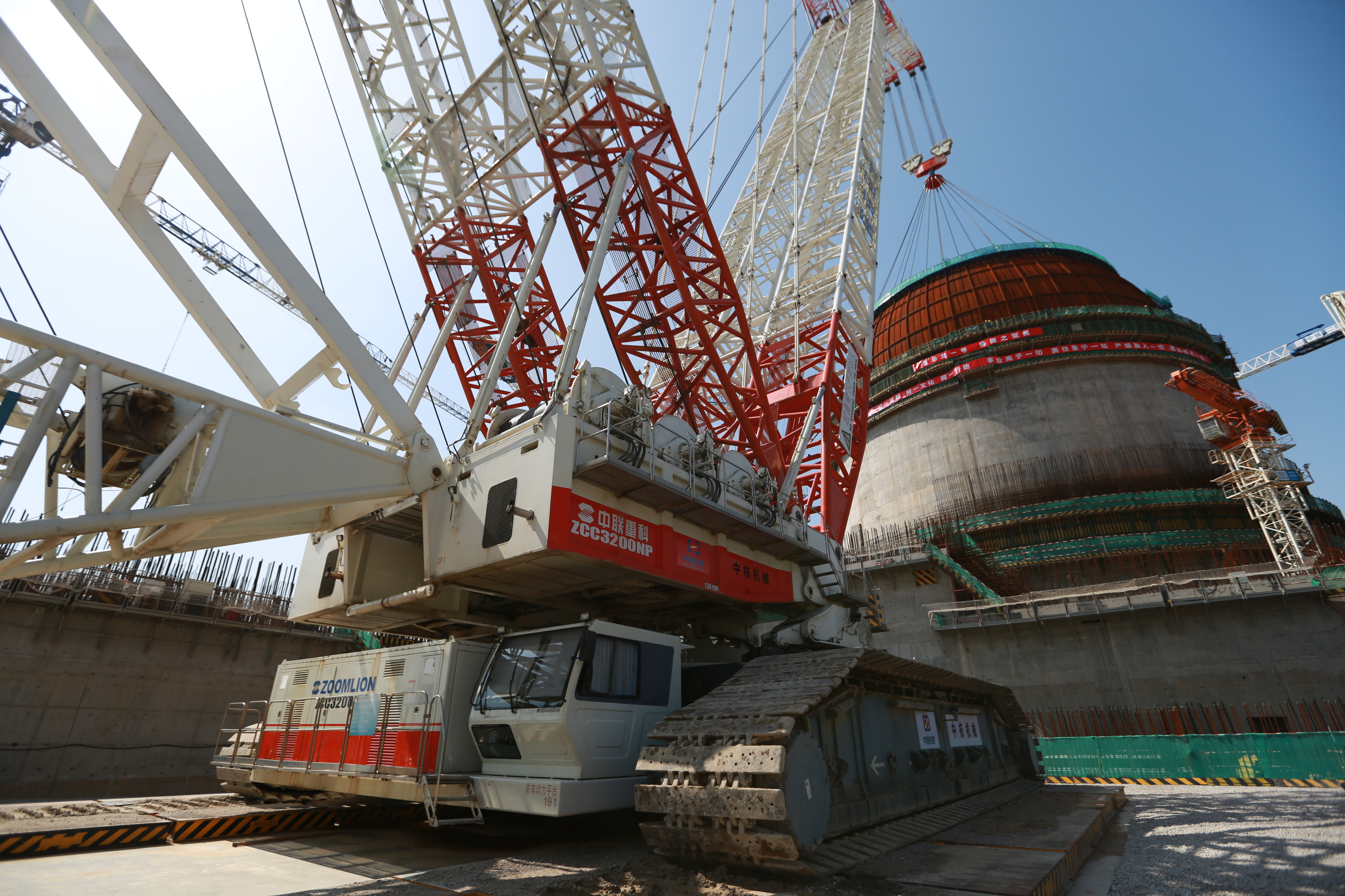△2017年,中聯(lián)重科3200噸履帶式起重機(jī)吊裝“華龍一號(hào)”5號(hào)機(jī)組穹頂