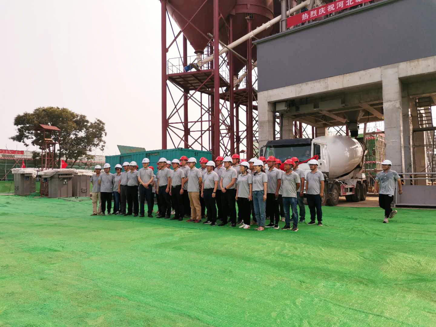 △中聯(lián)重科建設(shè)打造的雄安二號攪拌站成功出料儀式現(xiàn)場