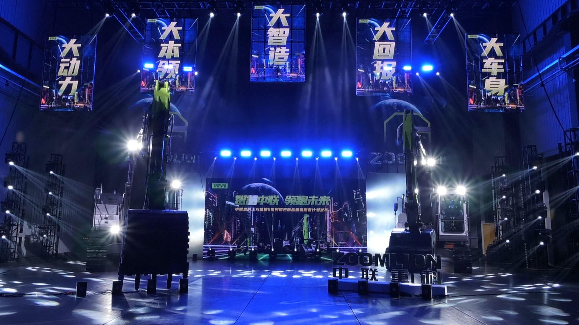 ▲中聯(lián)重科土方機械G系列國四新品發(fā)布會現(xiàn)場