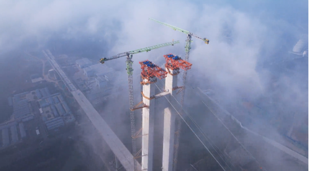 ▲中聯(lián)重科塔機(jī)在仙新路過江通道項(xiàng)目現(xiàn)場(chǎng)(圖片來源于新華日?qǐng)?bào))