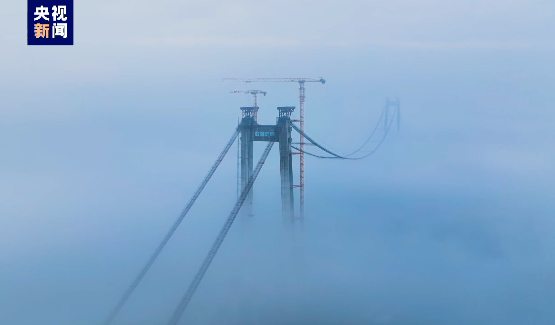 ▲龍門大橋項目建設(shè)現(xiàn)場(圖片來源于“央視新聞客戶端”)
