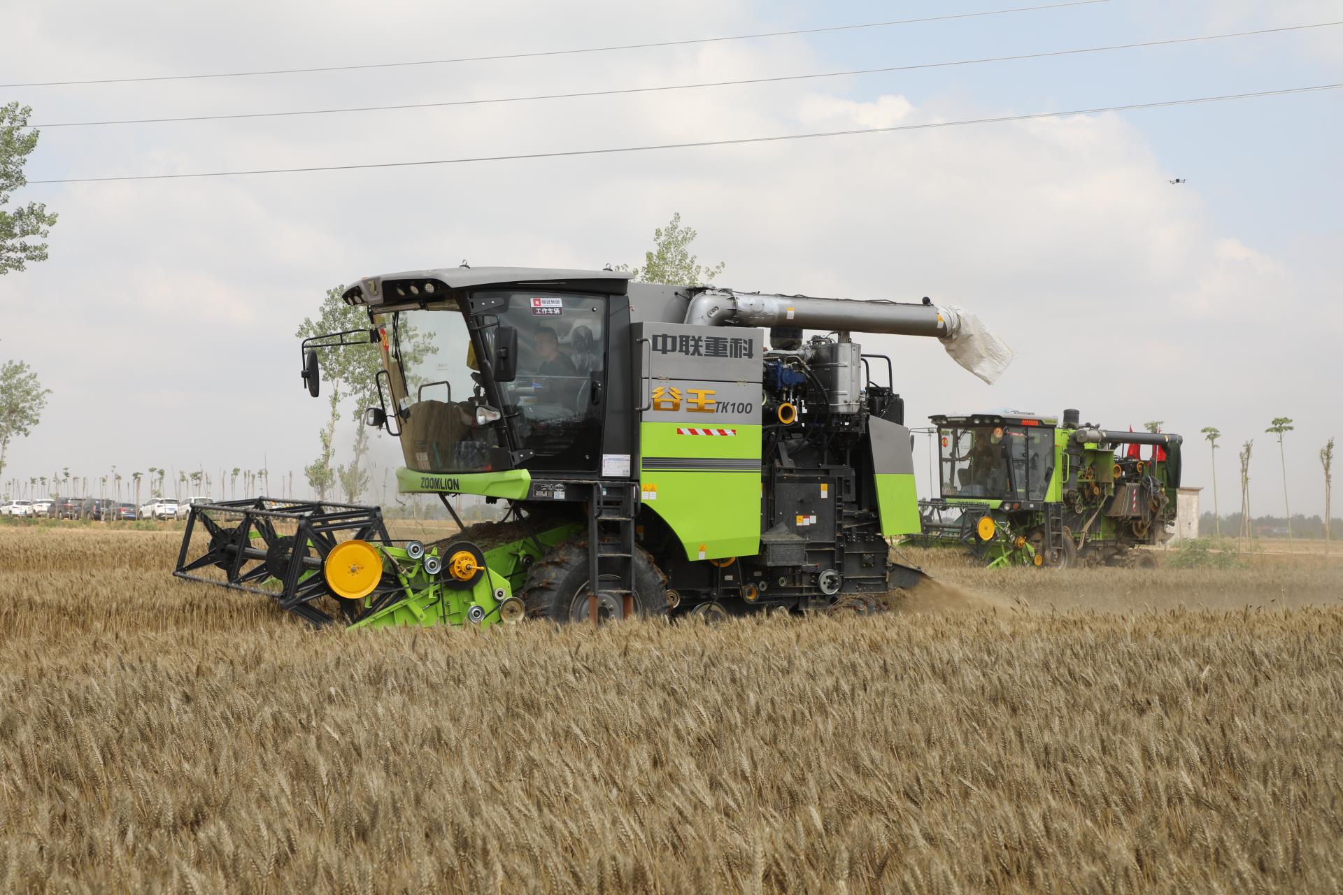 ▲中聯(lián)重科TK100縱軸流谷物聯(lián)合收獲機正在搶收小麥