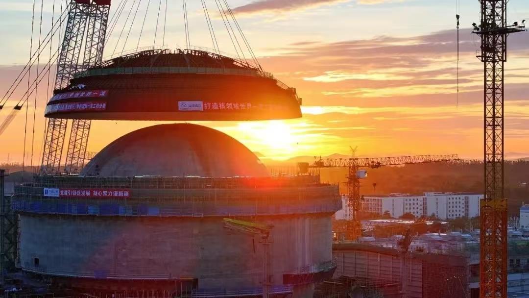 “準(zhǔn)備起吊”!伴隨著現(xiàn)場吊裝總指揮的一聲令下,10月18日,總重量約為600噸的昌江核電二期3號(hào)機(jī)組超大型外穹頂模塊,在中聯(lián)重科3200噸履帶起重機(jī)的吊裝下安全而平穩(wěn)地落在核島頂部,為核電機(jī)組勾勒出了雄偉的輪廓,也標(biāo)志著核島主體結(jié)構(gòu)施工已基本完成,為接下來的安裝調(diào)試及并網(wǎng)發(fā)電奠定了堅(jiān)實(shí)的基礎(chǔ)。