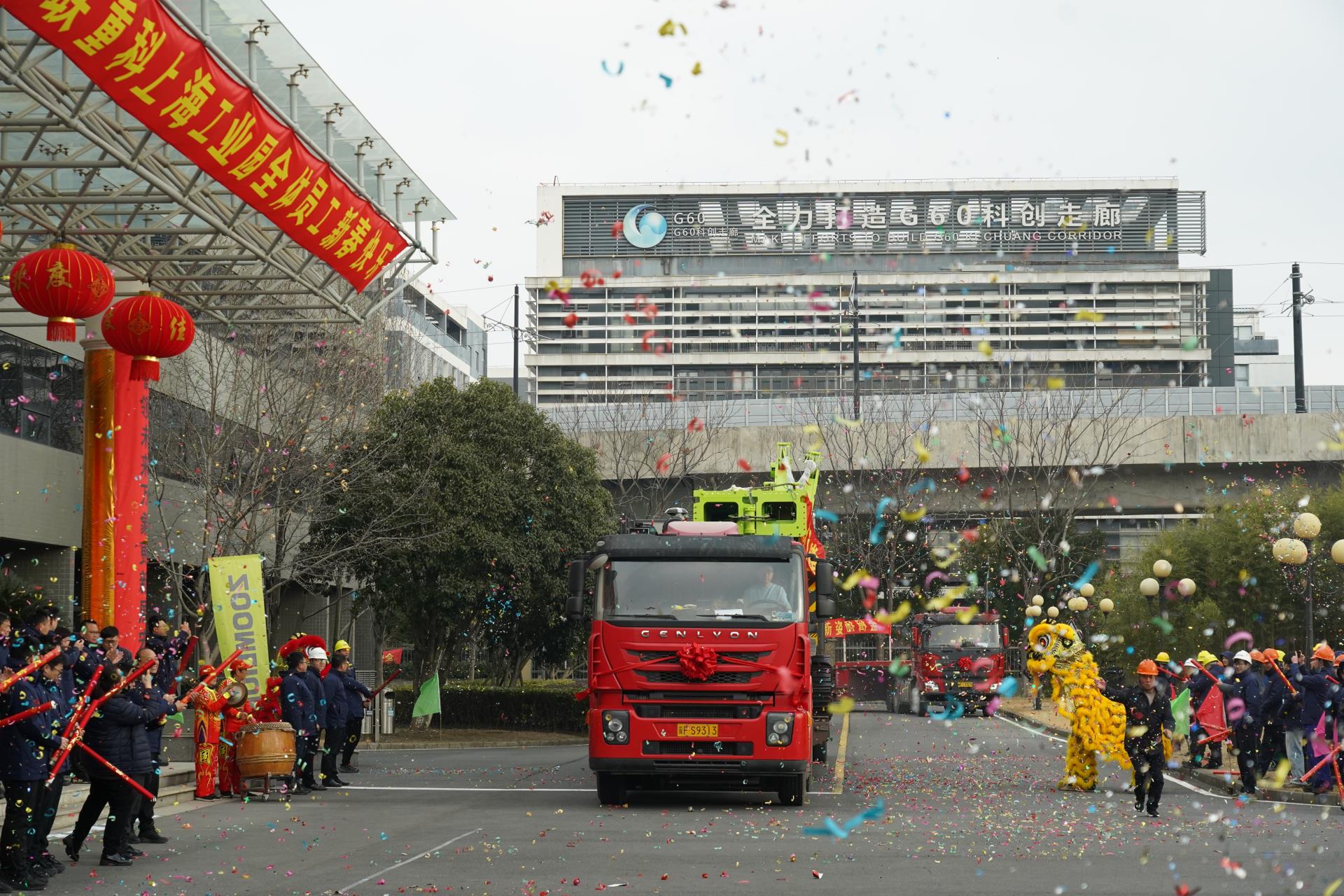 當(dāng)天,隨著一聲“發(fā)車(chē)!”號(hào)令,現(xiàn)場(chǎng)鞭炮齊鳴、爆竹聲聲,中聯(lián)智慧產(chǎn)業(yè)城四大園區(qū)同時(shí)發(fā)車(chē),四支車(chē)隊(duì)浩浩蕩蕩,從園區(qū)出發(fā),經(jīng)過(guò)總部大樓接受檢閱,開(kāi)啟闊步全球的新篇章。