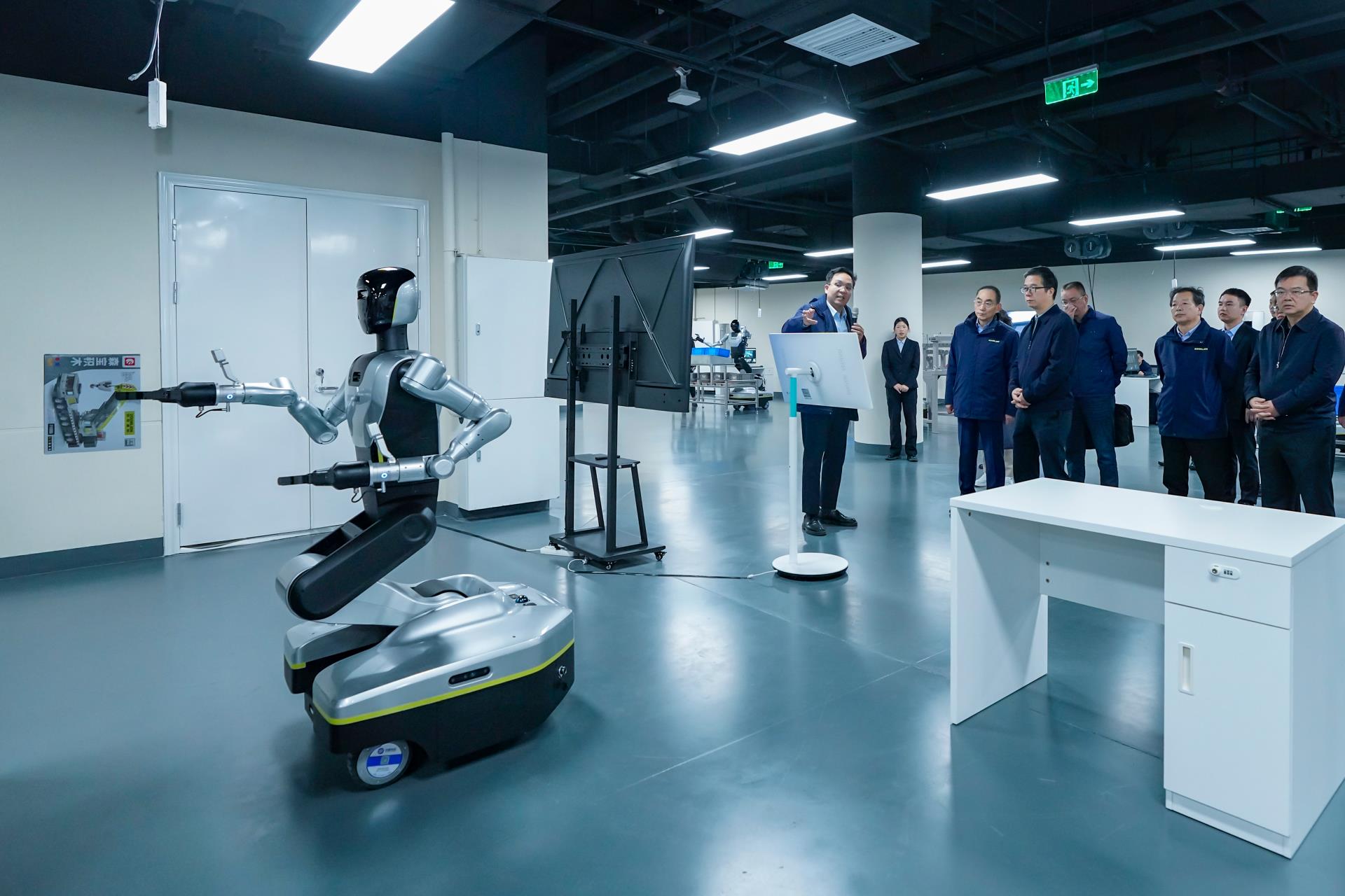 ▲湖南省國資委黨委書記、主任肖文偉一行調研中聯(lián)重科具身智能機器人訓練場