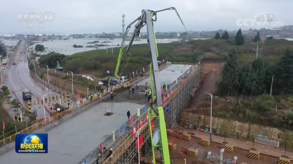 ▲中聯(lián)重科泵車正在項(xiàng)目現(xiàn)場(chǎng)進(jìn)行施工(圖片來源:央視新聞)
