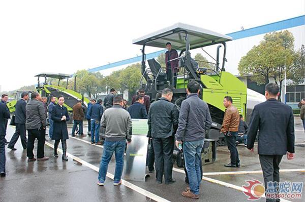 ▲客戶現(xiàn)場觀賞中聯(lián)重科路面機(jī)械4.0產(chǎn)品攤鋪機(jī)