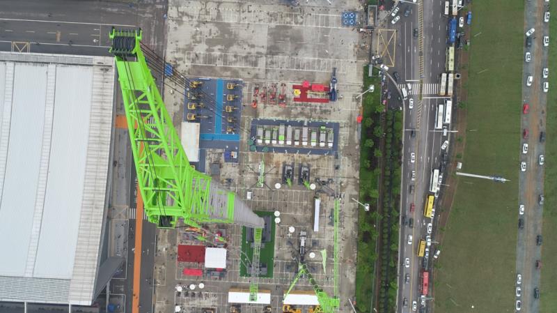 ▲2019長(zhǎng)沙展上,俯瞰中聯(lián)重科ZCC9800W履帶起重機(jī)