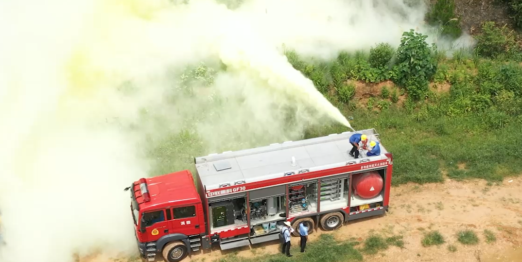 近年來,中聯(lián)重科研發(fā)打造了3噸、6噸、12噸級干粉、干粉泡沫聯(lián)用消防車,30米級舉高臂架氣、粉、泡沫聯(lián)用消防車等一系列應急救援裝備,形成了系列化多劑聯(lián)用滅火裝備。該系列產品通過氮氣、干粉、泡沫的組合,滅火能力遠高于單品類氣、粉、泡沫消防車,為各類復雜場景的火災事故提供一種全新的滅火方式。