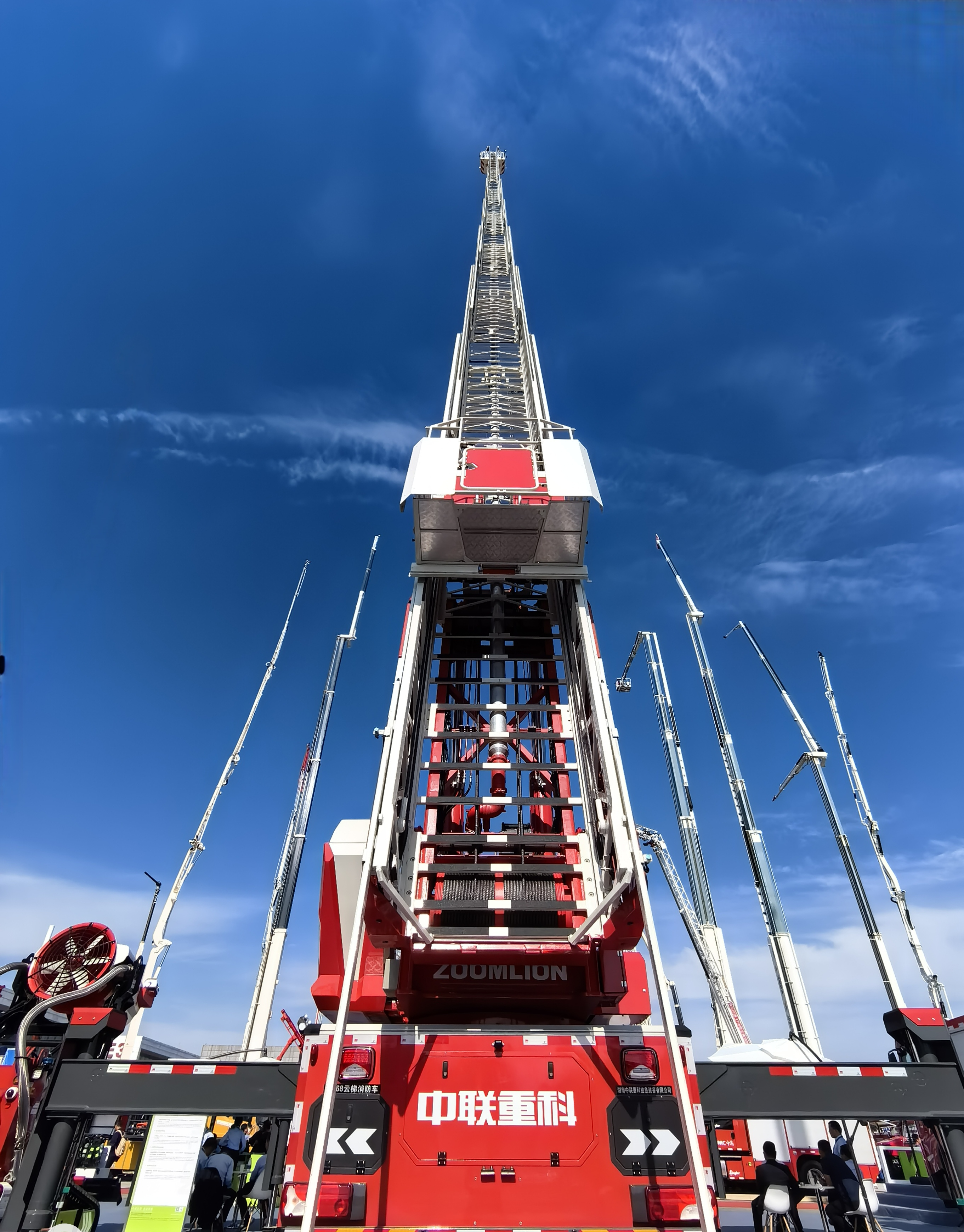 ▲中聯(lián)重科全球**高68米直臂云梯消防車