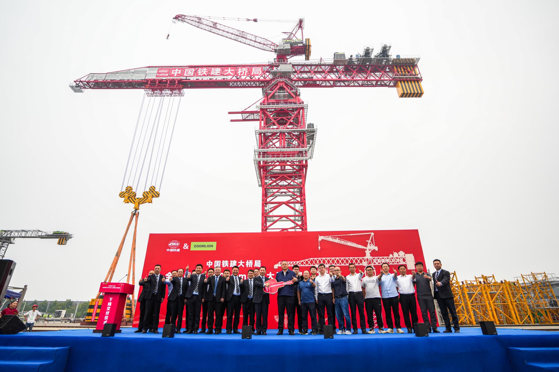中國(guó)鐵建大橋局副總經(jīng)理劉長(zhǎng)海,中聯(lián)重科助理總裁、建筑起重機(jī)械分公司總經(jīng)理黃建兵,中國(guó)鐵建大橋局、業(yè)主相關(guān)單位、中聯(lián)重科建筑起重機(jī)械分公司相關(guān)領(lǐng)導(dǎo)共同出席下線交付儀式。