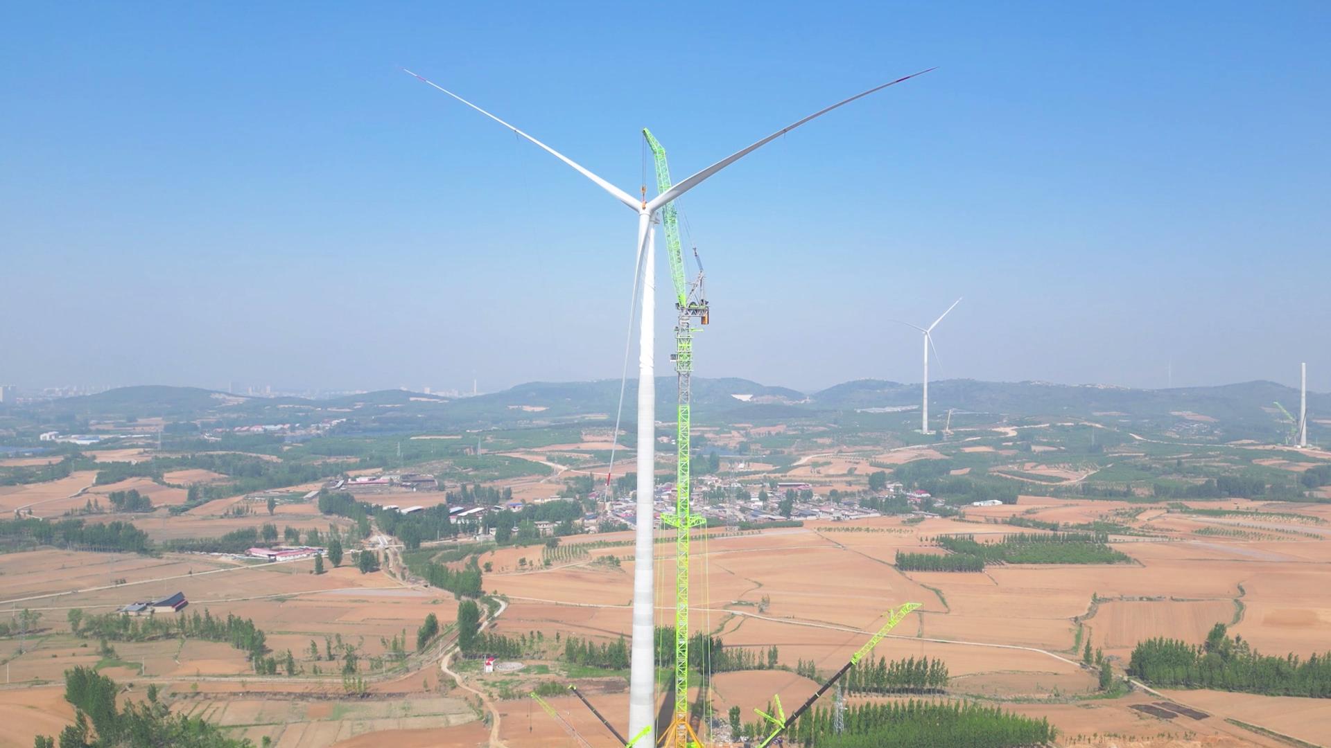 △中聯(lián)重科全球**高216米風(fēng)電動(dòng)臂塔機(jī)LW2800A-200NA在秦皇島金風(fēng)撫寧100MW風(fēng)電項(xiàng)目施工