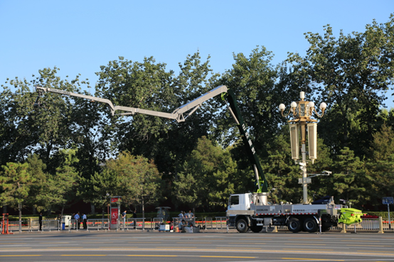 此次大閱兵拍攝,中聯(lián)重科派出包括兩臺(tái)80噸大型起重機(jī),兩臺(tái)95噸大型汽車起重機(jī),兩臺(tái)16噸汽車起重機(jī),一臺(tái)60米亞洲**高云梯消防車,一臺(tái)53米消防云梯車,一臺(tái)33米泵車,全力配合閱兵直播。讓我們一起來(lái)看看位于天安門核心區(qū)域及長(zhǎng)安街沿線的這些高端裝備產(chǎn)品是如何配合央視進(jìn)行全球直播工作的?