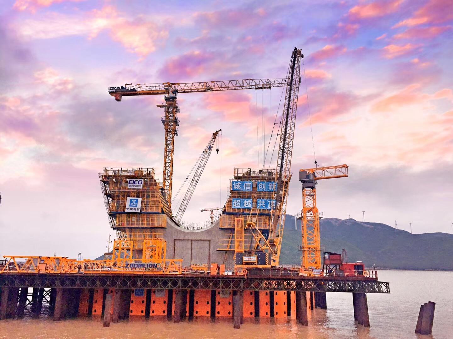 ▲中聯(lián)重科塔機助建舟岱跨海大橋