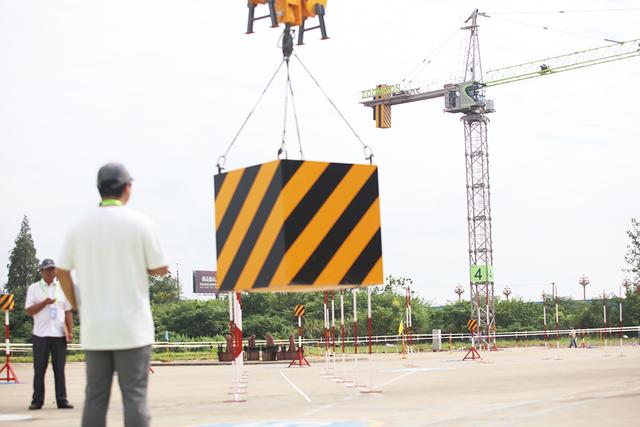 ▲2017年“中聯(lián)杯”全國吊裝競賽,選手正在進(jìn)行實際操作比賽
