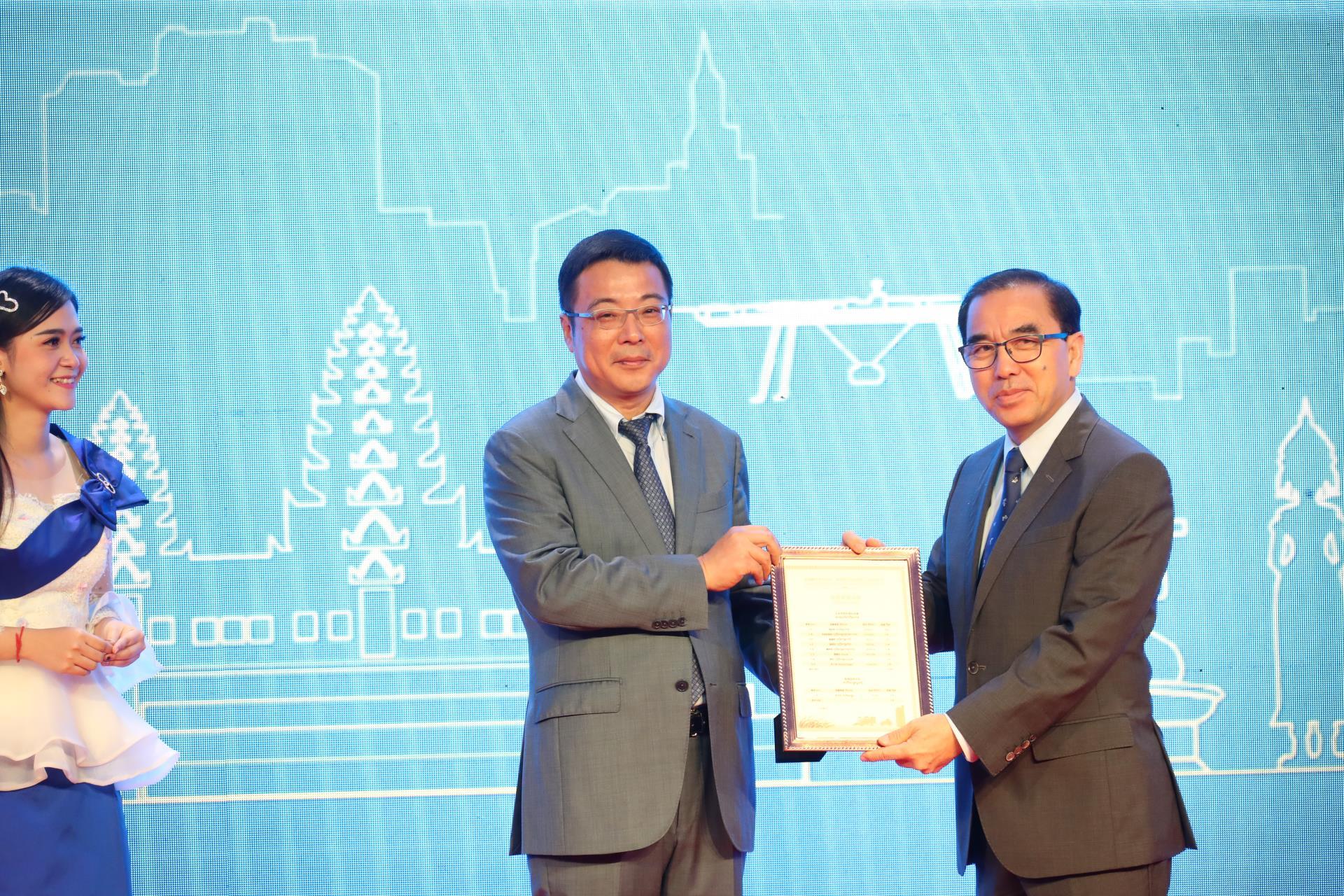 ??? 11月19日,中國(湖南)裝備與制造走進柬埔寨投資博覽會暨項目簽約儀式在柬埔寨首都金邊舉行。在中共中央委員、湖南省委書記杜家毫,柬埔寨國務(wù)大臣孫占托,中國駐柬埔寨大使王文天,中聯(lián)重科董事長詹純新等中柬嘉賓的共同見證下,中聯(lián)農(nóng)業(yè)機械股份有限公司董事長熊焰明與柬埔寨農(nóng)林漁業(yè)部部長永沙坤簽署了《關(guān)于推進農(nóng)業(yè)機械化與智慧農(nóng)業(yè)技術(shù)研究與應(yīng)用戰(zhàn)略合作備忘錄》,并宣布向柬埔寨農(nóng)林漁業(yè)部捐贈玉米全程機械化設(shè)備、智慧型烘干機等一批高端農(nóng)機裝備。