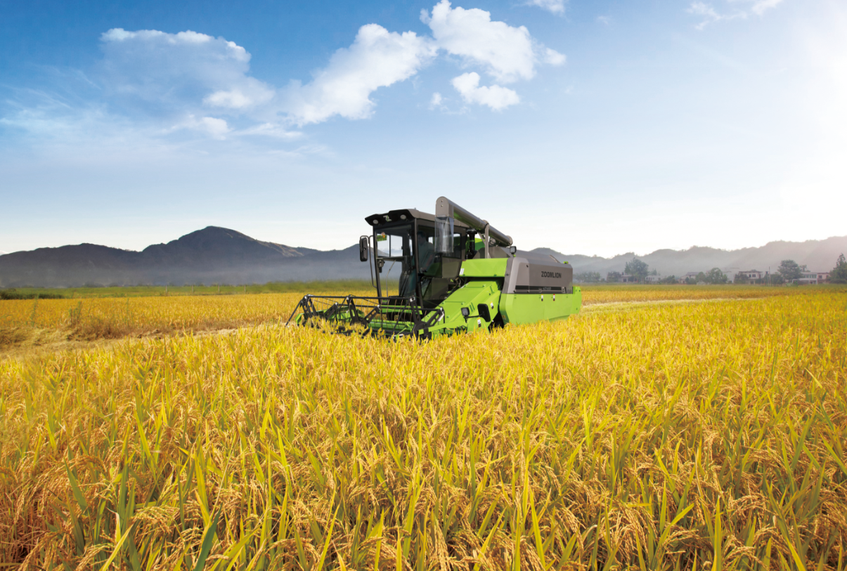 ▲中聯(lián)重科智慧農機收獲水稻