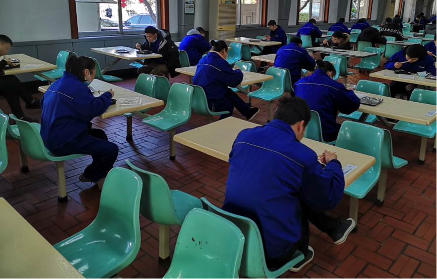 ▲中聯(lián)重科采用分餐制,員工一人一桌、有序就餐