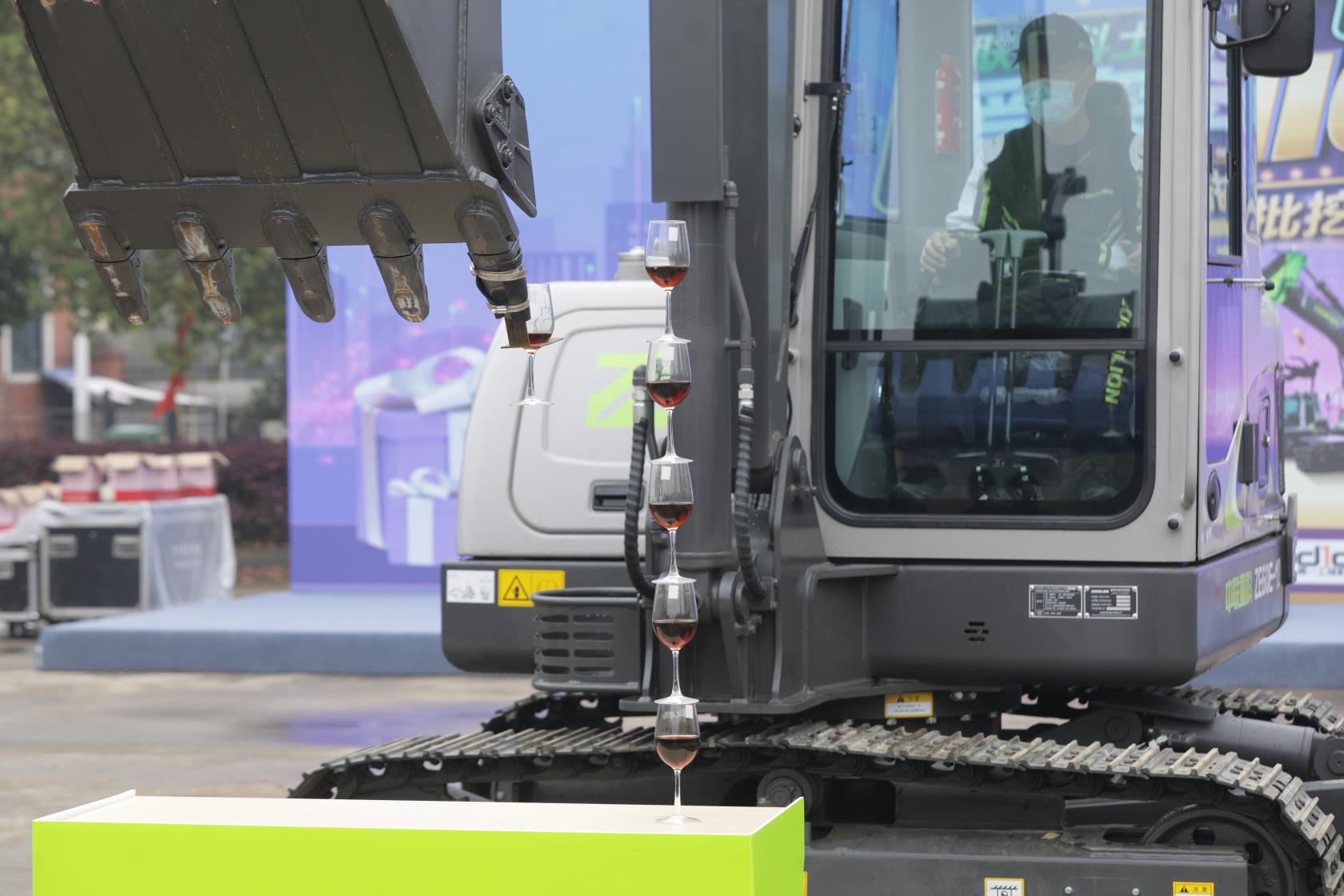 直播現(xiàn)場(chǎng),中聯(lián)重科ZE60E-10挖掘機(jī)表演了連人手都很難操作的“疊酒杯”高難度動(dòng)作。只見機(jī)手輕松用鏟斗斗齒將裝滿紅酒的酒杯成功疊加在一起,里面的紅酒沒有一點(diǎn)傾灑,完美的“人機(jī)合一”讓人驚嘆。