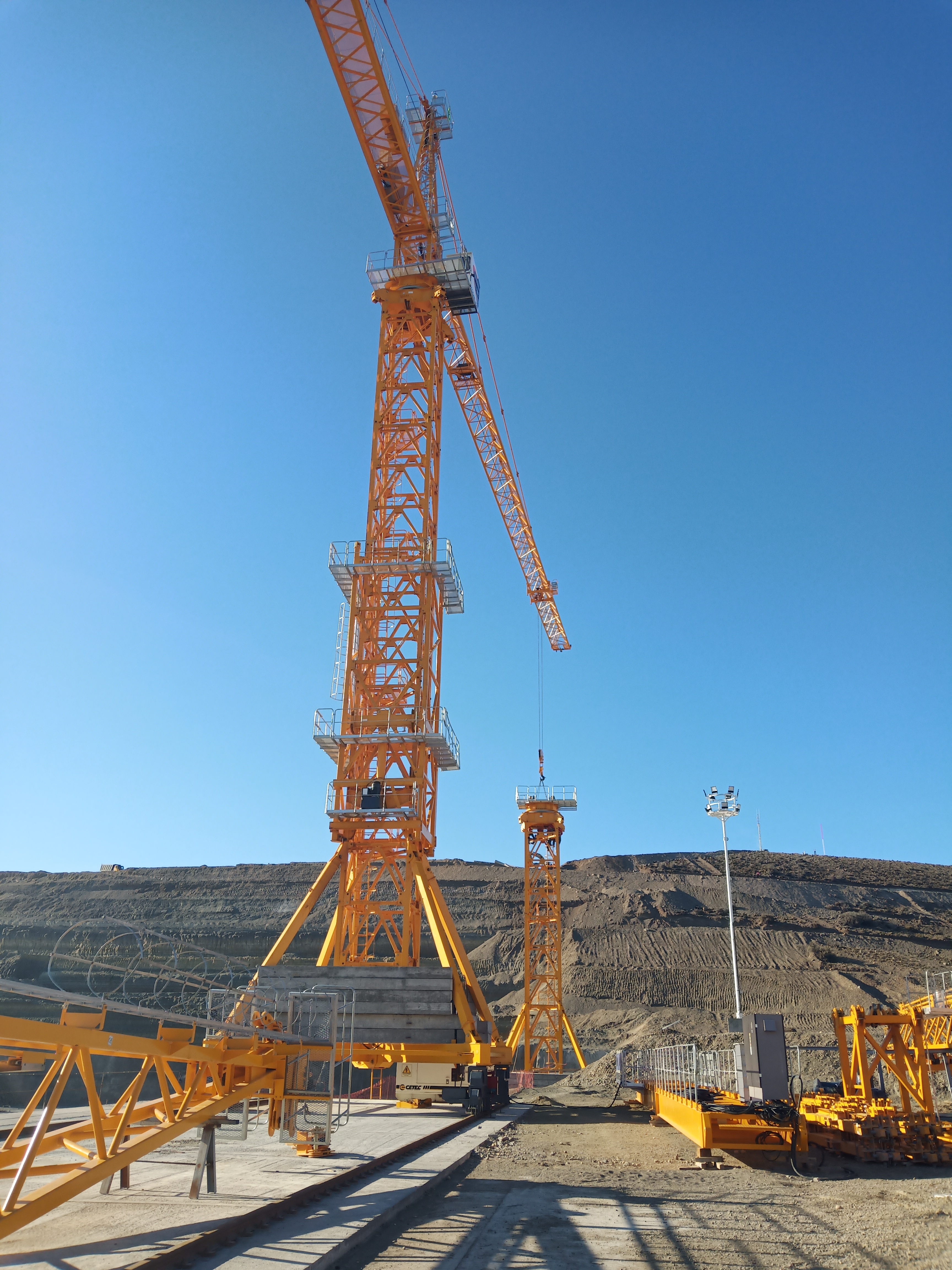 在這種極端條件下,中聯(lián)重科攜手承建商中國能建葛洲壩集團,為項目供應了多臺錘頭式塔機TC7052-25和D800-42投入使用。考慮到此項目氣候環(huán)境較為復雜,且設備需要極高的抗風能力,中聯(lián)重科研發(fā)團隊針對該項目做了一系列特殊化設計,如采用片式標準節(jié)結(jié)構(gòu),節(jié)片間用經(jīng)特殊處理過的銷軸連接,標準節(jié)主弦桿拼方采用埋弧焊,大大提高了力學性能;腹桿采用方鋼管結(jié)構(gòu),分散風力,優(yōu)化了塔機的抗風性。