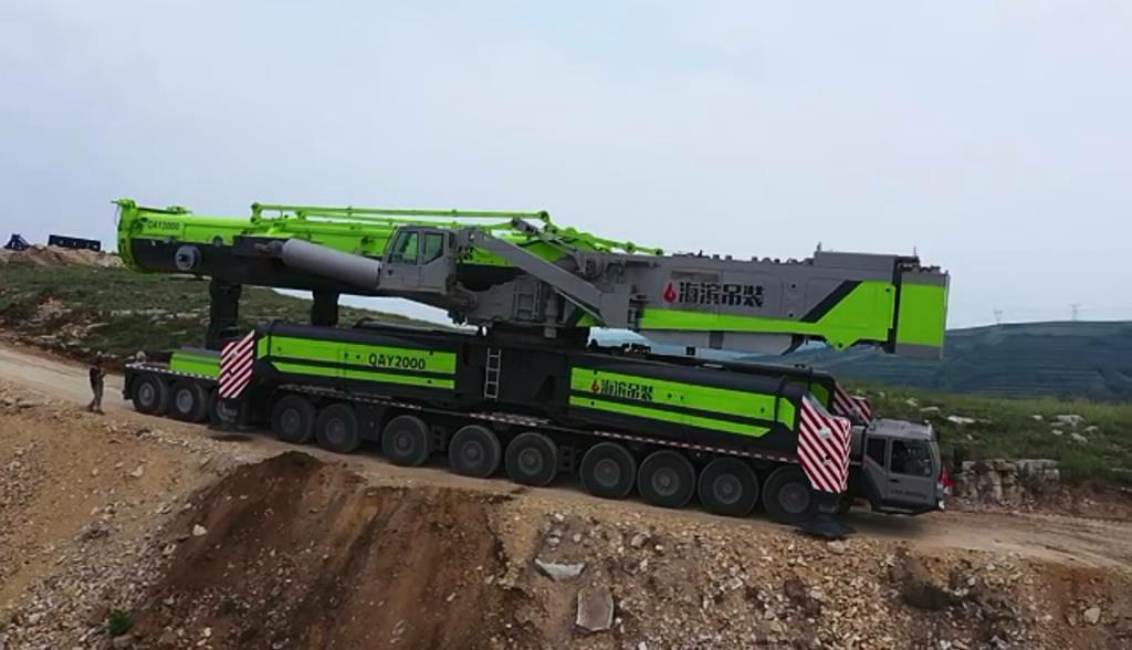 △在坡度為33%的工況下,中聯(lián)重科QAY2000全地面起重機重載轉(zhuǎn)場