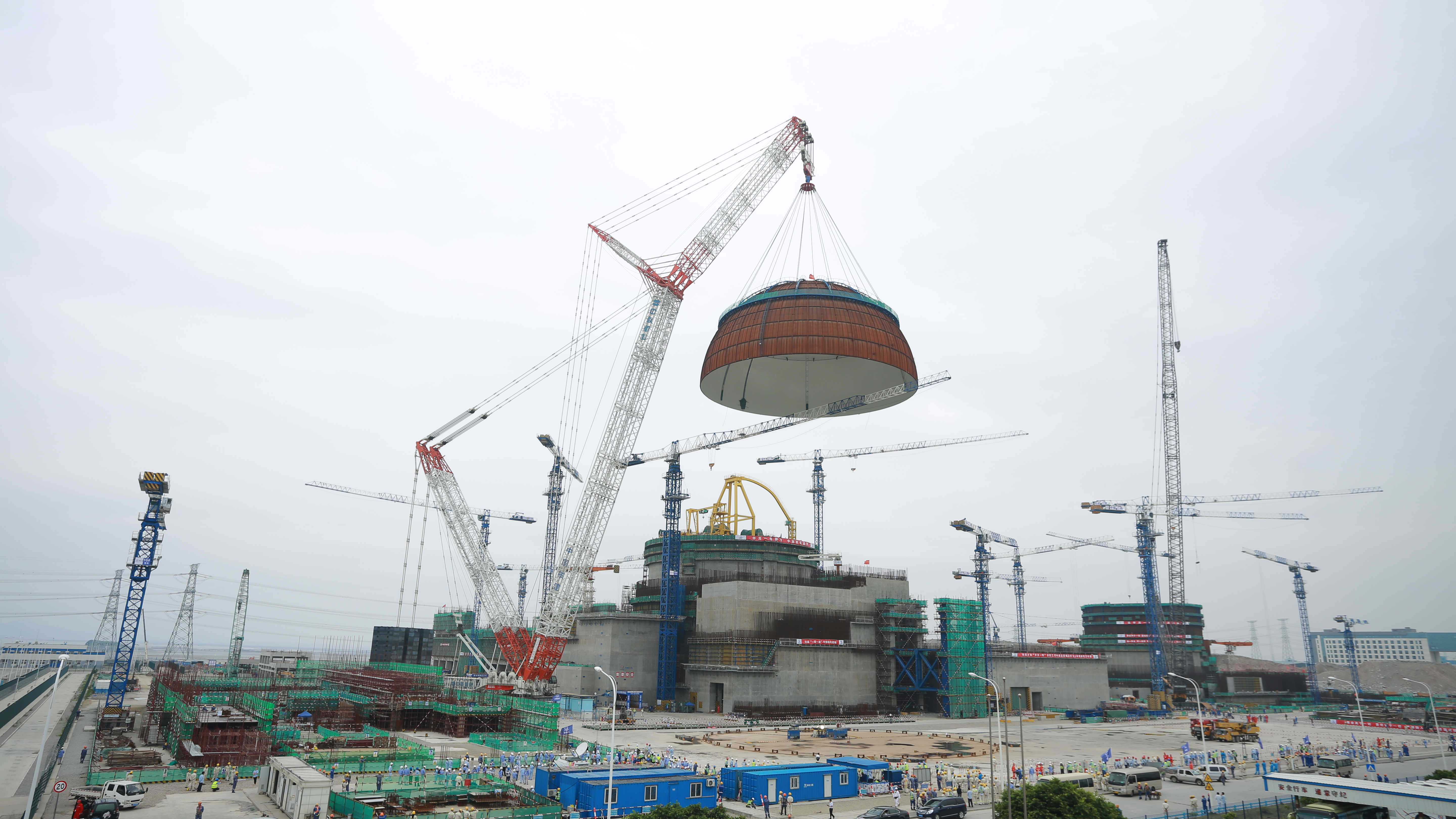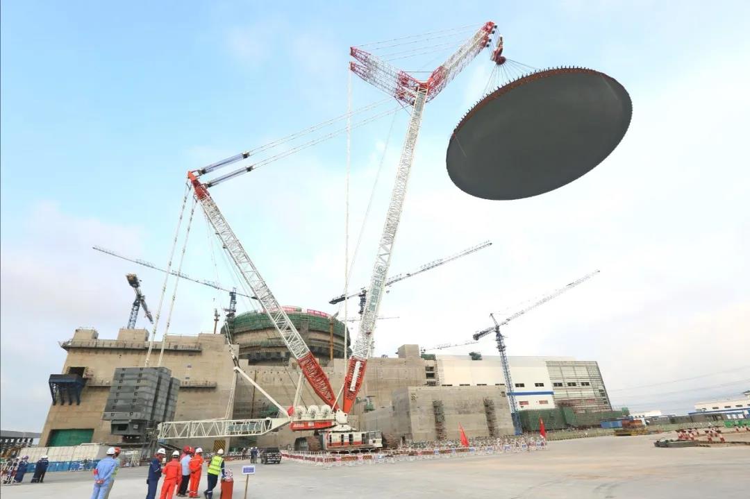 △中聯(lián)重科3200噸履帶吊助力“華龍一號(hào)” 福清核電6號(hào)機(jī)組外層安全殼穹頂鋼模板吊裝(圖片來源于“中核集團(tuán)”微信公眾號(hào))