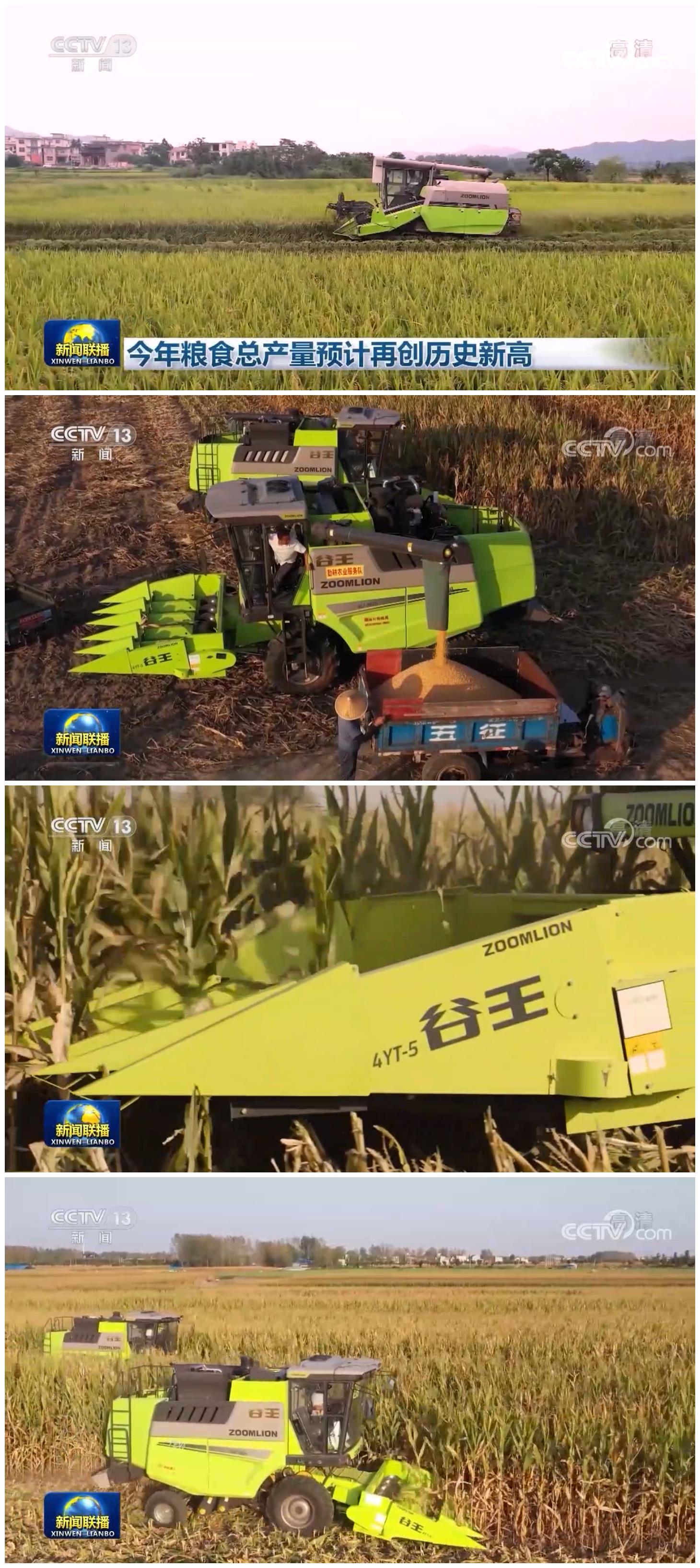 10月28日,中央電視臺《新聞聯(lián)播》播出了“今年糧食總產(chǎn)量預(yù)計再創(chuàng)歷史新高”的主題報道,聚焦農(nóng)業(yè)農(nóng)村部發(fā)布秋糧收獲接近九成,豐收已成定局,預(yù)計全年糧食總產(chǎn)量再創(chuàng)歷史新高,連續(xù)6年保持在1.3萬億斤以上。重點(diǎn)展示了中聯(lián)重科農(nóng)機(jī)產(chǎn)品在田間作業(yè)的工作畫面,一派豐收景象。
