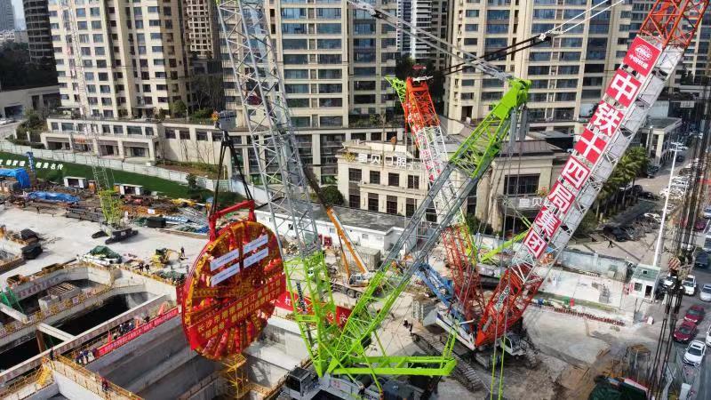 △中聯(lián)重科履帶起重機(jī)成功吊裝500噸重盾構(gòu)機(jī)刀盤下井
