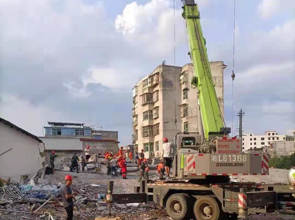6月19日,湖南郴州汝城縣附近一座樓房發(fā)生倒塌。當(dāng)日中午,接到湖南省應(yīng)急管理廳的緊急救援調(diào)令,中聯(lián)重科黨委書(shū)記、董事長(zhǎng)詹純新**一時(shí)間部署,要求公司全力以赴支持救援工作。中聯(lián)重科重型工程機(jī)械救援隊(duì)迅速派出2臺(tái)25噸和1臺(tái)80噸汽車(chē)起重機(jī)和10余名應(yīng)急救援隊(duì)員奔赴現(xiàn)場(chǎng),參與救援工作。