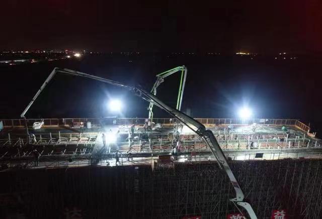 據了解,除了矗立長江中流擊水的中聯重科萬噸米級塔機,中聯重科泵車等設備也正在為項目建設提供助力。7月30日凌晨5點,經過8個小時的連續(xù)奮戰(zhàn),常泰長江大橋北接線工程CT-TX1標泰興東樞紐首聯現澆箱梁底腹板澆筑完成,項目正式進入上部現澆結構施工階段。其中負責澆筑的就有中聯重科混凝土泵車。