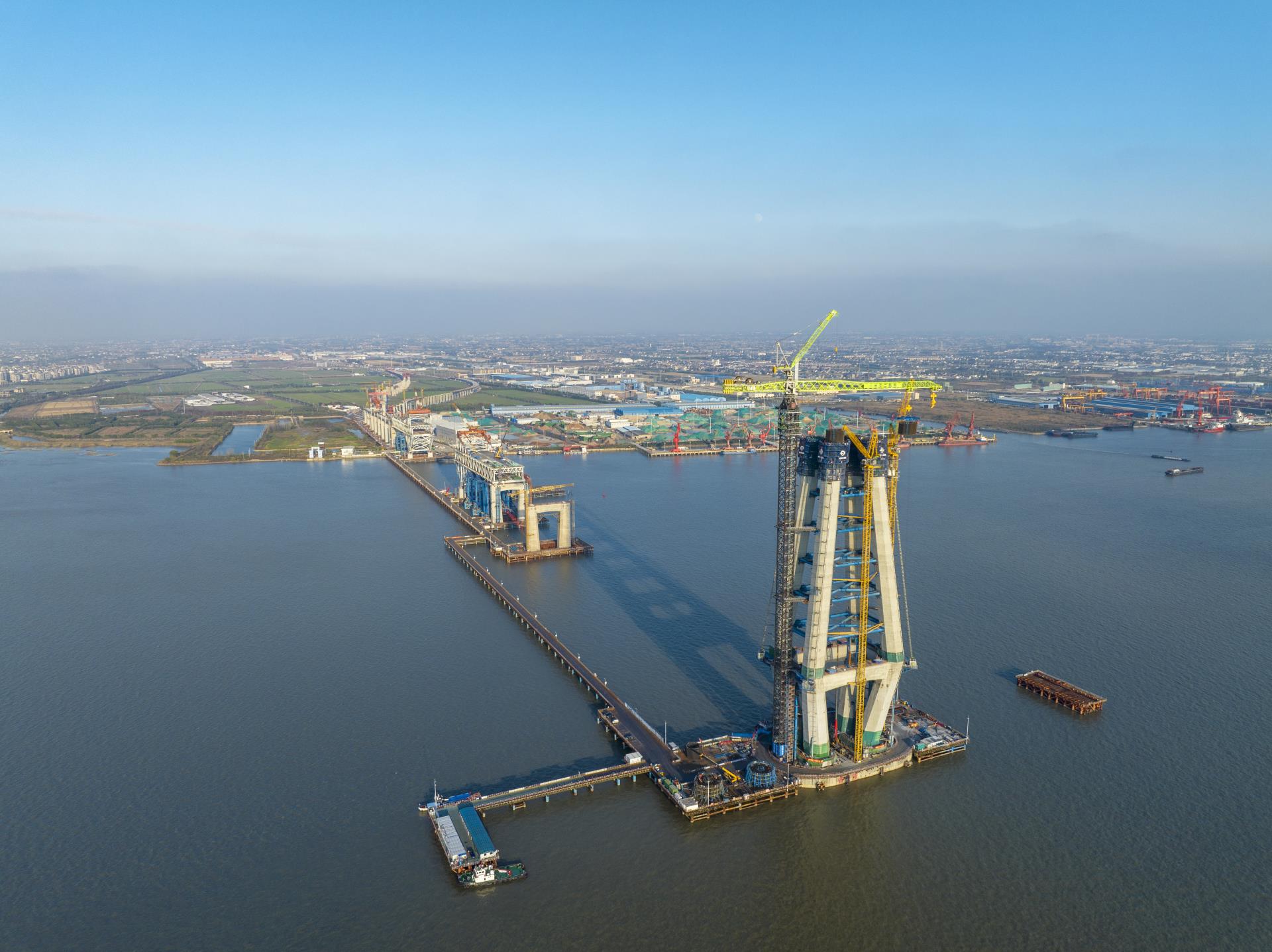 ▲W12000-450塔式起重機(jī)在常泰長江大橋建設(shè)現(xiàn)場