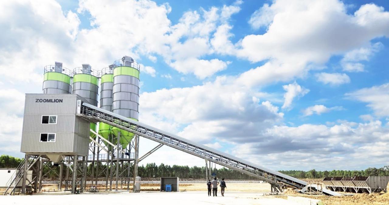 ▲中聯(lián)重科HZS180R集裝箱攪拌站在泰國完成安裝