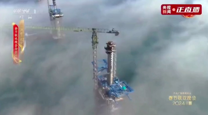 △春晚直播中,中聯(lián)重科塔機施工場景