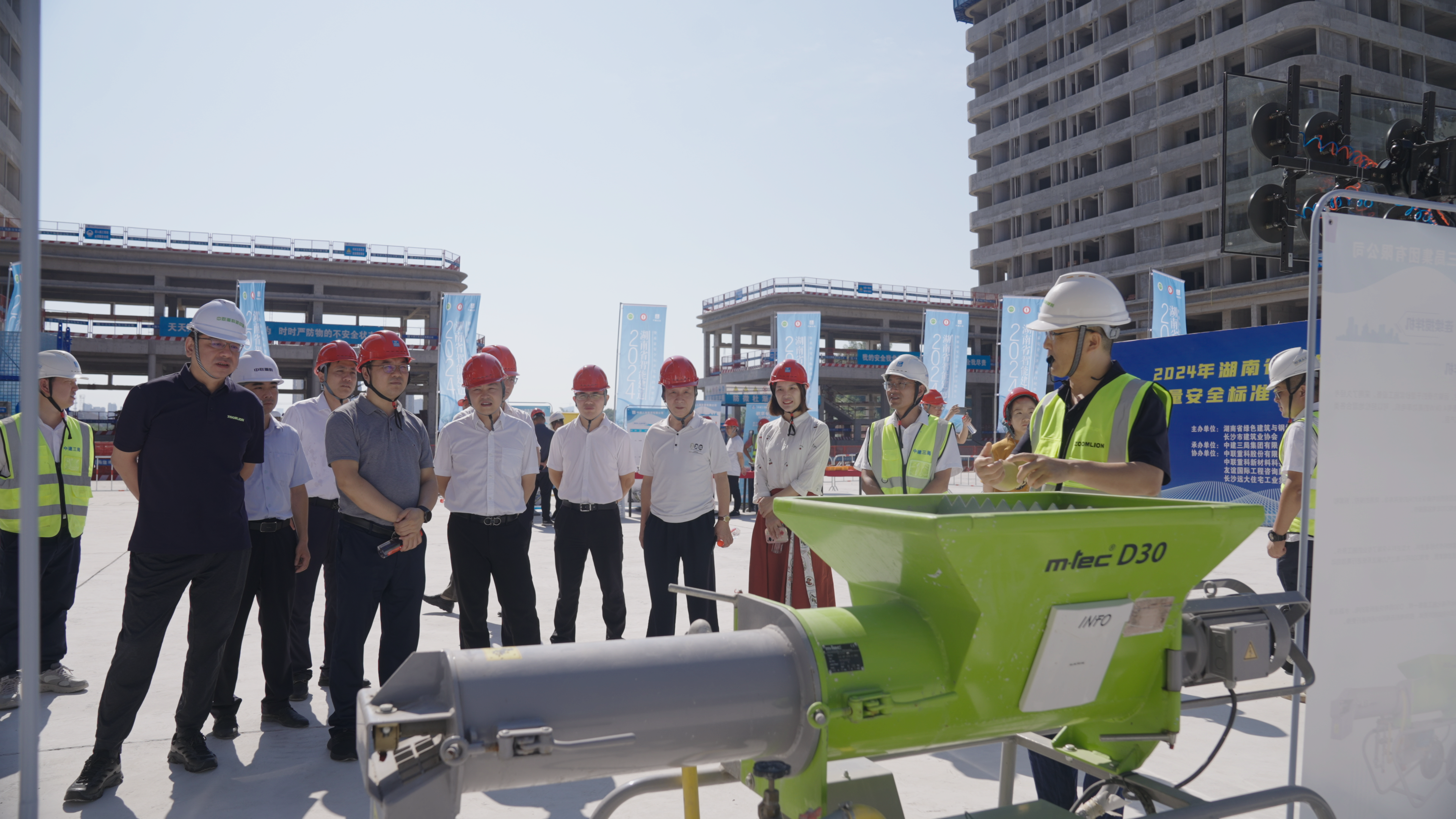 8月9日,2024年湖南省智能建造暨質(zhì)量安全標(biāo)準(zhǔn)化項目觀摩會在長沙中聯(lián)智慧產(chǎn)業(yè)城舉行?;顒蝇F(xiàn)場,中聯(lián)重科展示了智能無人施工升降機、智能玻璃安裝機器人等智能化施工裝備,以及墻面機械化施工解決方案。來自湖南省綠色建筑與鋼結(jié)構(gòu)行業(yè)協(xié)會、長沙市建筑業(yè)協(xié)會以及建筑行業(yè)代表共250余人參加。