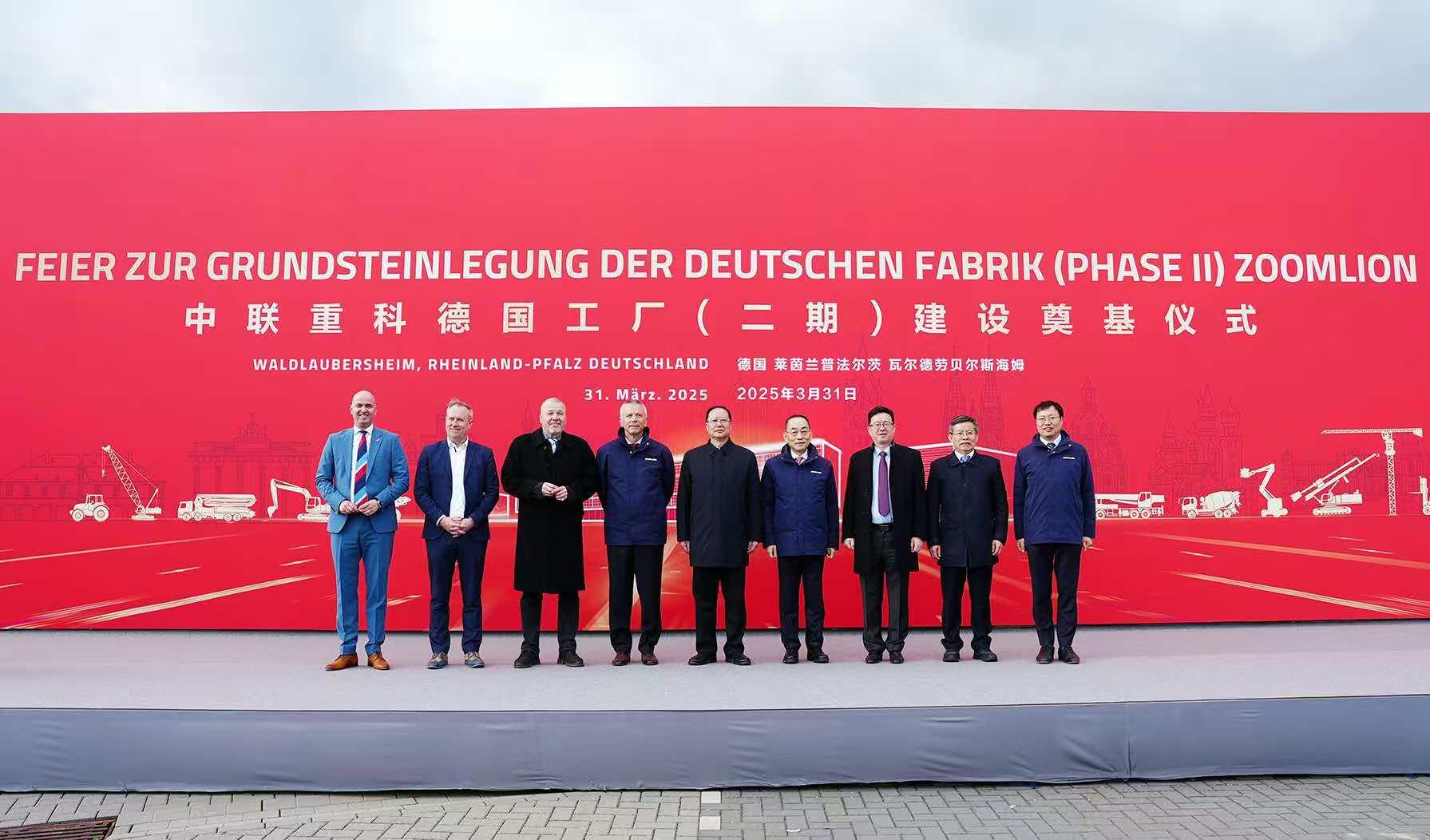當(dāng)?shù)貢r(shí)間3月31日,中聯(lián)重科德國(guó)工廠二期奠基儀式在德國(guó)瓦爾德勞貝爾斯海姆舉行,將擴(kuò)建廠房進(jìn)行產(chǎn)業(yè)拓展升級(jí),打造集產(chǎn)品展示、銷售、生產(chǎn)和服務(wù)于一體的綜合性海外生產(chǎn)基地,持續(xù)加速企業(yè)全球化發(fā)展。率湖南省代表團(tuán)訪問德國(guó)的湖南省委副書記、省長(zhǎng)毛偉明,德國(guó)聯(lián)邦議院議員喬·溫加頓博士,中國(guó)駐法蘭克福總領(lǐng)事黃昳揚(yáng),中聯(lián)重科董事長(zhǎng)、CEO詹純新出席并致辭。