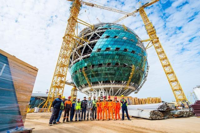 ▲中聯(lián)重科塔機(jī)建設(shè)哈薩克斯坦世博會(huì)主場(chǎng)館施工現(xiàn)場(chǎng)。