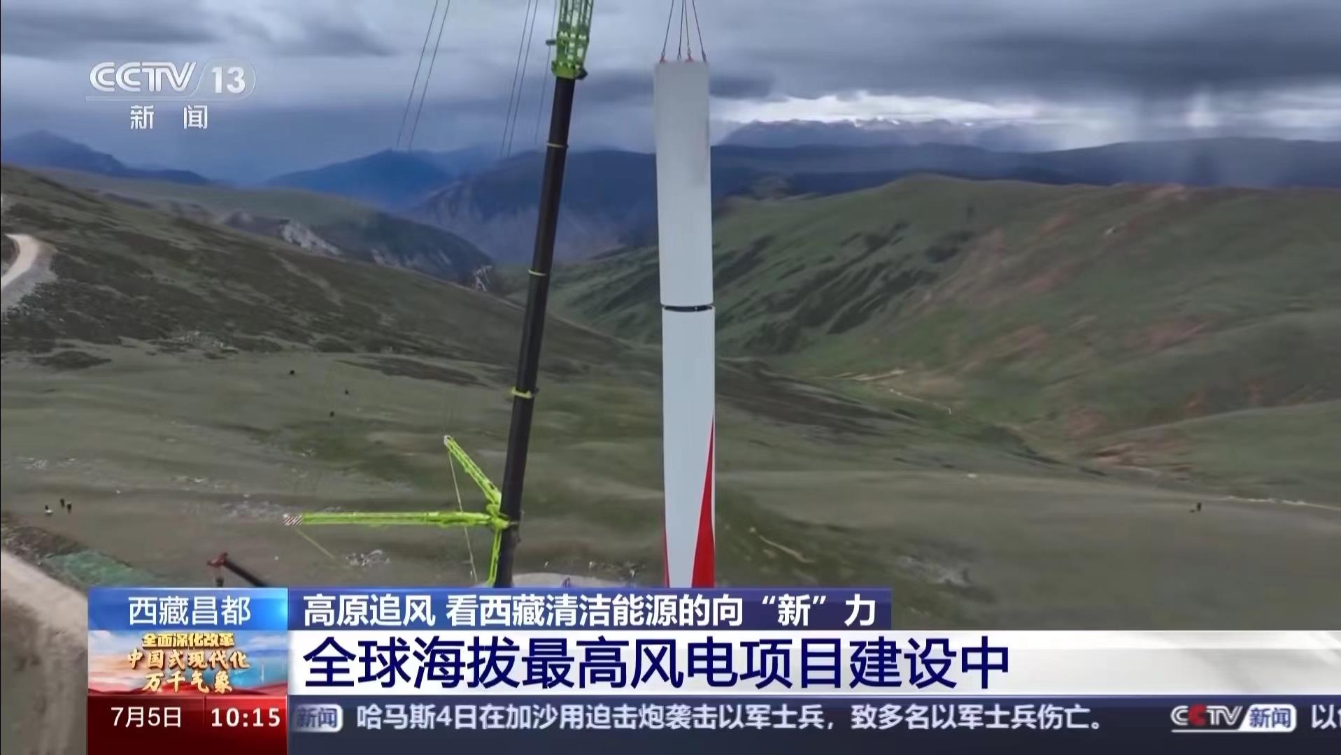 世界屋脊之上,極光綠與風(fēng)機白并肩傲立,助力點亮萬家燈火。近日,央視新聞頻道關(guān)注西藏昌都全球海拔**高風(fēng)電項目建設(shè),畫面中,中聯(lián)重科全地面起重機作為主力設(shè)備,順利吊裝項目首臺風(fēng)機,這一重要時刻也標(biāo)志著工程建設(shè)邁入新的里程碑。