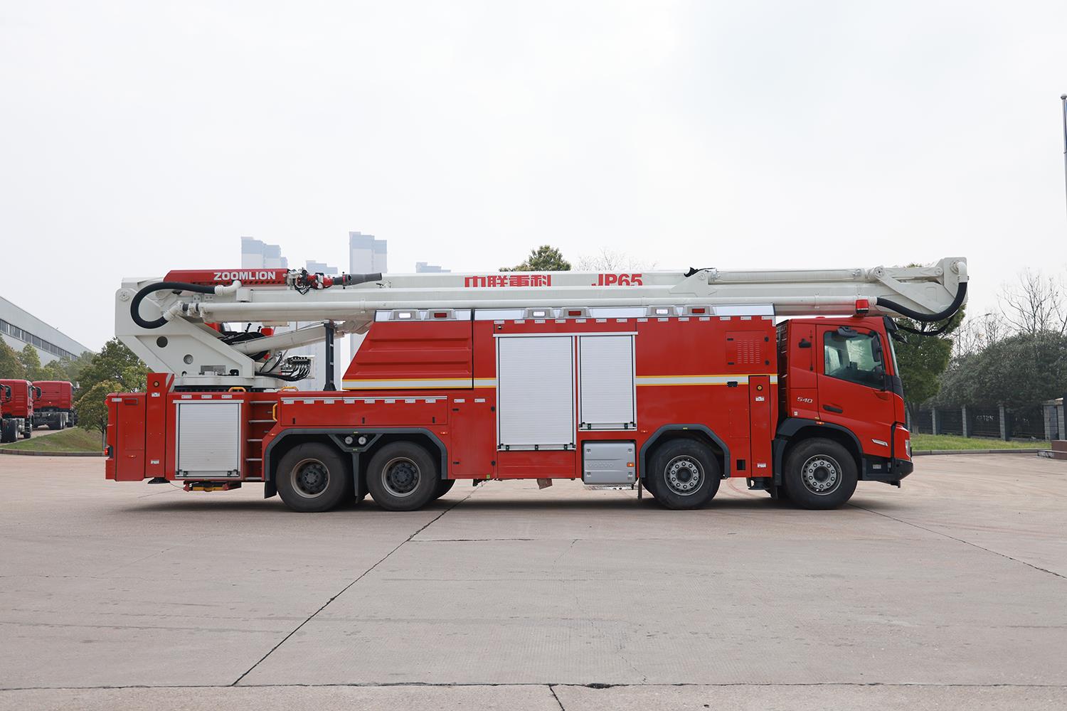 中聯(lián)重科65米大型舉高噴射消防車,是高層建筑滅火利器,廣泛用于城鎮(zhèn)、工礦企業(yè)高層建筑以及石油、化工、油罐、倉庫等高大建筑物的火災(zāi)撲救。