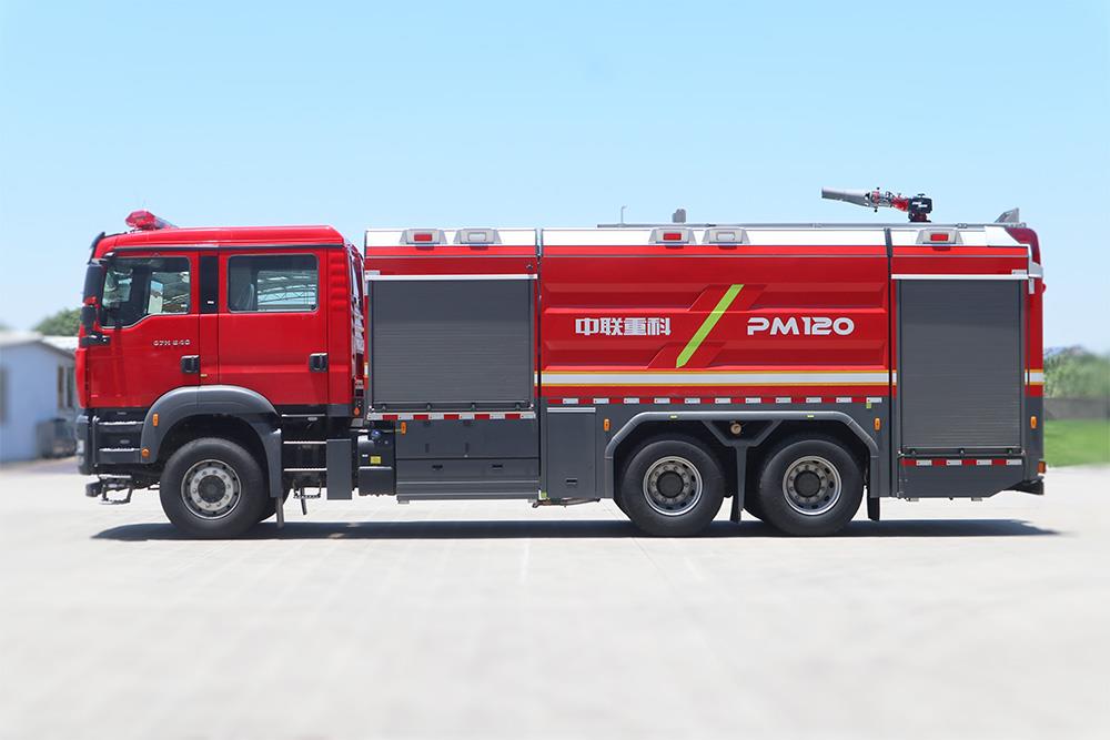 中聯(lián)牌PM120型泡沫消防車,整車載液量大,裝備常規(guī)型B類泡沫系統(tǒng),適合撲救工業(yè)與民用建筑A類火災(zāi),亦可撲救石化,煤化,油庫等B類火災(zāi);全鋁合金車身,自重輕,強(qiáng)度高,防腐蝕性能好,可隨車攜帶多種搶險(xiǎn)救援器材。本車輛還可進(jìn)行接力供水,是城市應(yīng)急救援消防隊(duì)與企業(yè)專職消防單位必備主力裝備。