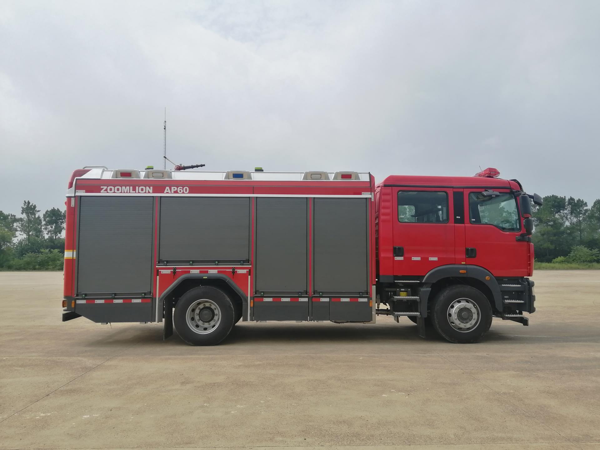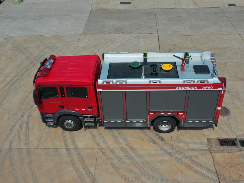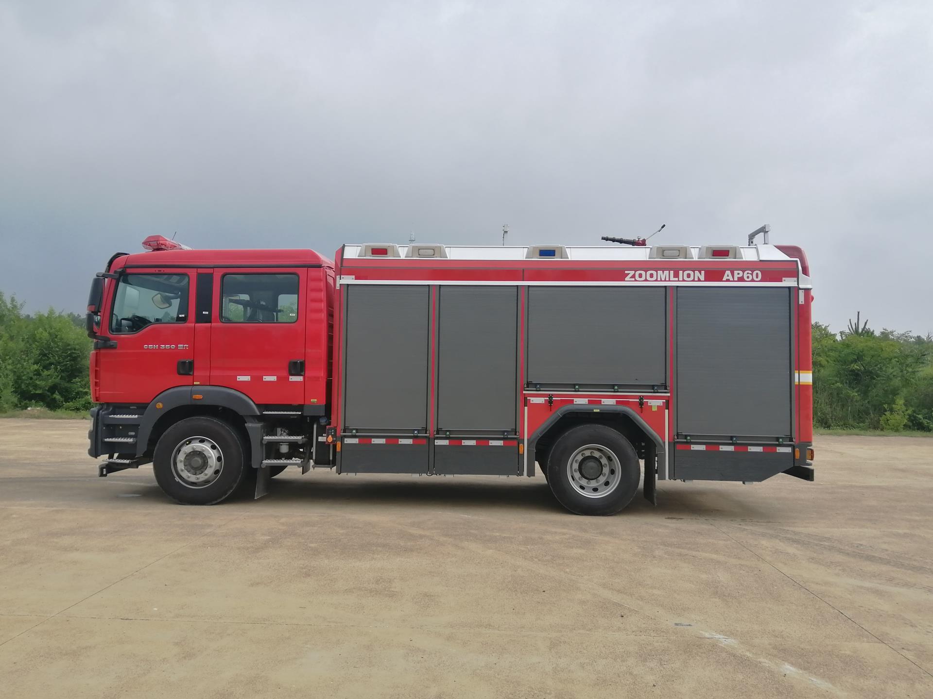 中聯(lián)牌AP60城市主戰(zhàn)消防車選用中國重汽汕德卡ZZ5206N471GF5型二類底盤、裝備進(jìn)口全自動壓縮空氣A類泡沫系統(tǒng)改裝而成。整車外形美觀、設(shè)計(jì)科學(xué)、匹配合理。