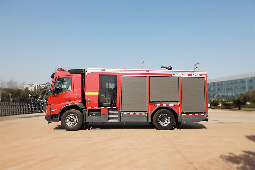 整車裝備了先進(jìn)的壓縮空氣泡沫系統(tǒng),采用集成式控制面板,具有操作方便快捷、滅火效率高、環(huán)保、滅火造成的次生損失小等特點(diǎn);全鋁合金車身,自重輕,強(qiáng)度高,防腐蝕性能好;器材箱采用專用鋁合金層架板搭接而成,可上下自由調(diào)節(jié),空間利用率高,器材配備多,取用方便;配置多項(xiàng)安全保護(hù)措施做到全方位防護(hù),保證車輛安全可靠;整車還裝備絞盤、升降照明系統(tǒng),可攜帶破拆工具、救生器具等多類器材,是火災(zāi)、抗洪、車禍等各類災(zāi)害滅火救援的主力車型。